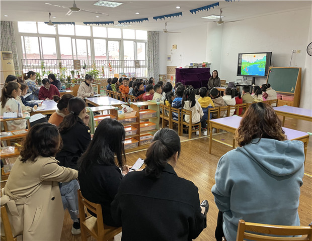 中午13:00,杭燕主任带领圩幼全体教师一起对上午的现场进行了研讨,本次研讨围绕三个环节展开:
