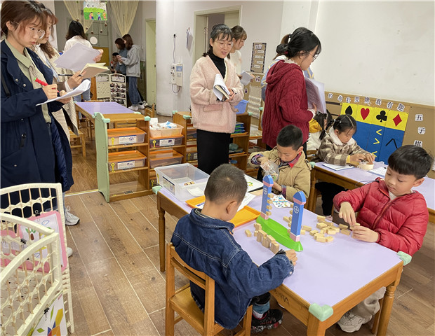 上午8:00,园领导及各班空课教师走进大(4)班,从区域活动、自主点心、教学活动、早操、户外活动、盥洗、自主就餐等各个环节进行了全面的观摩,了解班级老师和幼儿活动情况,聚焦每个环节中幼儿的兴趣、习惯、能力、自主性、记录幼儿的有效学习以及教师在活动中的观察与指导的适宜性。大4班的老师结合当下主题及本班幼儿的实际情况,呈现了常态化的半日活动现场,活动内容丰富有趣。孩子们投入的状态让老师们非常赞赏。参与教师对幼儿行为及教师观察和指导以及站位进行了详细的记录与分析,对如何提高半日常规质量进行深度思考。