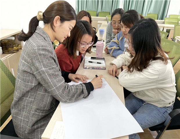 通过大家的交流和对话,杭老师提炼了以下三个问题:区域中季节性、主题性的东西如何彰显?什么样的支架是有价值的?户外活动中教师的观察和指导以及站位怎样才有效?集体教学活动中幼儿为主体如何体现?各个活动之间如何减少消极的等待?级组长带领级组老师开展了小组讨论,大家集思广益,为解决问题出谋划策。大班组的老师主要从教学活动中备课、目标、教学这三个方面去谈了谈如何体现幼儿为主体。他们建议增加一些谈话、游戏、故事、音乐来减少各个活动之间的消极等待。中班老师围绕户外活动中观察的内容、精确地站位和材料的投放等方面提出了一些新的意见。小班的老师分别从季节性和主题性投放材料和支架的便捷、美观性进行了分享。