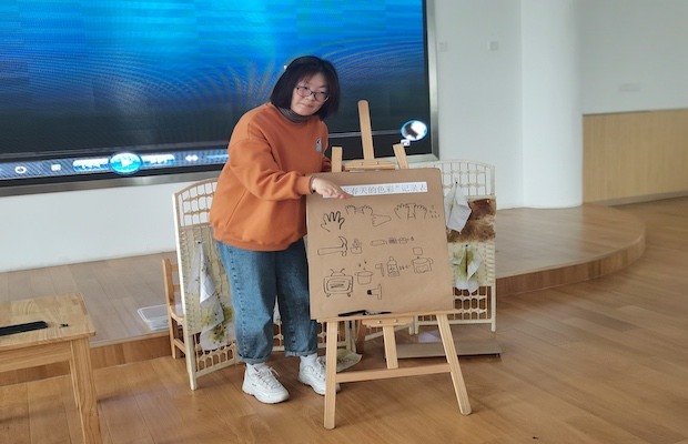 课程实施不是静态的、固定的,而是持续发展、动态的,郑静老师和李潭老师结合当下主题活动,基于幼儿的兴趣与需求,给我们带来了精彩活动:大班科学《植物色素》、大班美术《积木世界的畅想》。郑静老师结合春天主题,提供多种常见工具,引发幼儿自主探索植物色素提取的积极性,让幼儿体验自主探究乐趣,感受大自然的神奇。李潭老师取材来自于孩子喜爱的积木游戏,通过游戏化的方式,引导幼儿对建构出的作品进行想象、命名、鼓励幼儿尝试写生,在写生基础上添画情节,幼儿在搭搭、说说、想想、画画的过程中,体验到美术创作的乐趣。