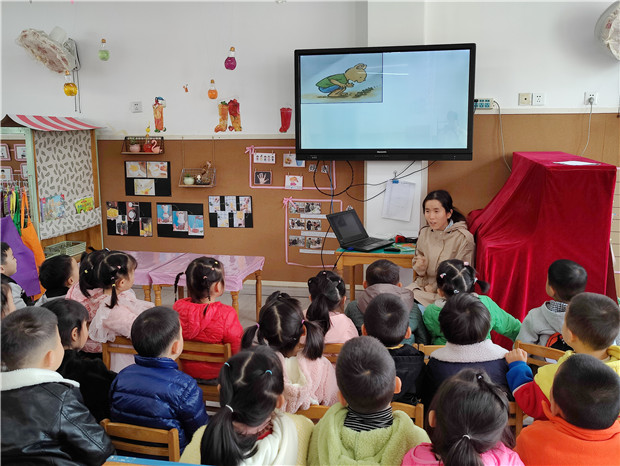 现场活动能够深入了解课题研究的过程与质量。在分享交流活动中,老师们就教学活动的价值与学科特质,紧紧围绕“教师在活动中采用的策略及整改建议”这一话题展开研讨。最后提出:语言教学活动要给予幼儿充分讲述的机会;同时语言活动中可以创设一些游戏或者音效等,从而增加语言活动的趣味性。丁园长提出开展语言活动,首先教师要清楚本次活动中,幼儿要活动哪些经验,在此基础上,教师对教材进行相应的取舍和架构。