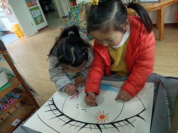 小一班和小二班通过图片、视频从“眼睛的用途”“为什么眼睛会生病?”“我们怎样保护眼睛”等方面给幼儿作了介绍。使孩子们知道了,因为有了眼睛,才能看到这多彩的世界;眼睛一旦生病了,就看不清这丰富多彩的世界。活动中,他们一个个听得聚精会神,认真地学做了眼保健操。小三班在测视力的过程中,老师们亲切耐心地为每位孩子做检查,孩子们也十分配合,用稚嫩的小手笔画出他们看到的方向。小四班老师还组织孩子们进行了绘画活动《大眼睛》,孩子们用手中的笔画出了自己眼中的世界,借着孩子的视角,看看这个美丽的世界吧!在生动有趣的绘画中,学习了健康用眼知识。