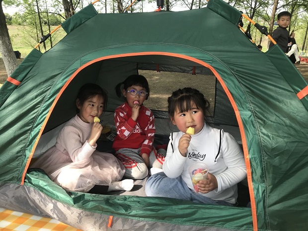 终于到达终点站“阳光草坪”啦!路途虽艰辛,但流淌的汗水无疑是孩子们坚定毅力的最好证明。孩子和家长们在草坪上席地而坐,孩子们一边分享自带的小零食,一边和小伙伴津津有味地谈论着沿途的趣事。休整完毕后,孩子们和家长们一起共玩民游,体验亲子游戏的快乐,阳光草坪顿时成了欢乐的海洋。最后,镜头下一张张班集体合影,为本次活动画下了圆满的句号。