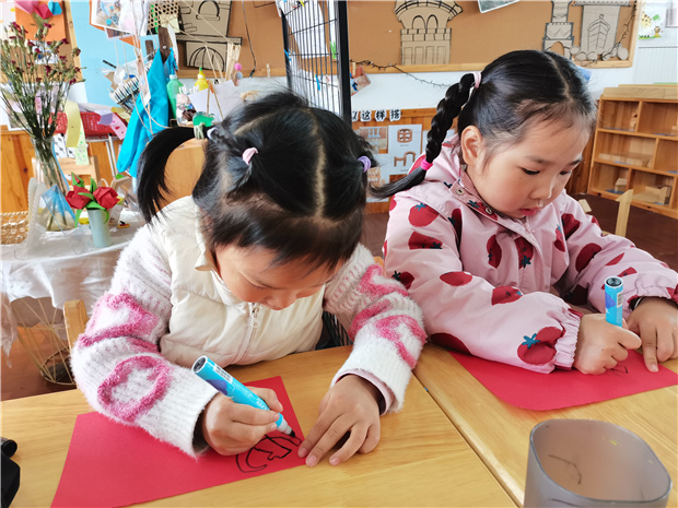 讲故事活动结束后,许多班级还进行了手工、绘画、歌唱等活动。孩子们用黏土、衍纸制作党徽,用绘画表征的方式展现自己的所思所想,用动听的歌声唱响红色童谣。这些活动在孩子们的心田种下了一颗小小的红色种子,让他们明白了现在的幸福生活来之不易,懂得珍惜。