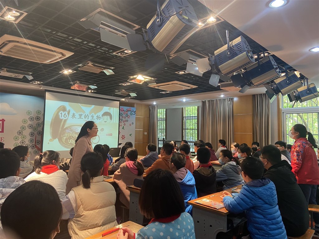四月南风大麦黄,枣花未落桐叶长。4月13日下午,新北区曹燕名教师成长营全体成员齐聚百草园小学,来自百草园小学的胡越老师和戴秀干老师分别执教一年级下册《动物王国开大会》和六年级下册《表里的生物》。