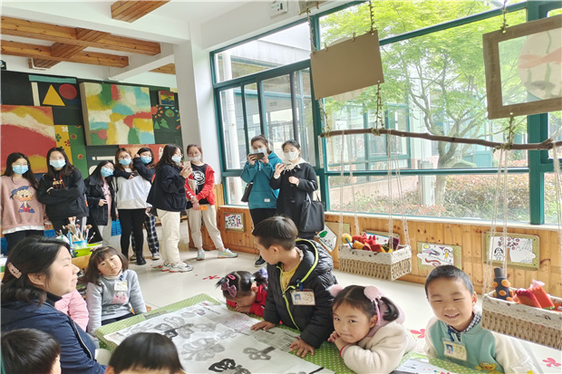 藻江花园幼儿园是一所美术特色园,在此次园长跟岗活动中,我园展示了两节美术活动。朱文靓老师:大班美术《春如线》和副园长李潭执教的大班美术《积木世界的畅想》。