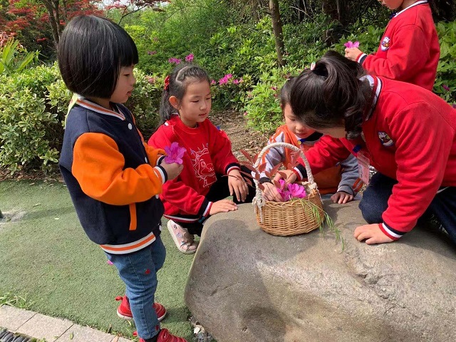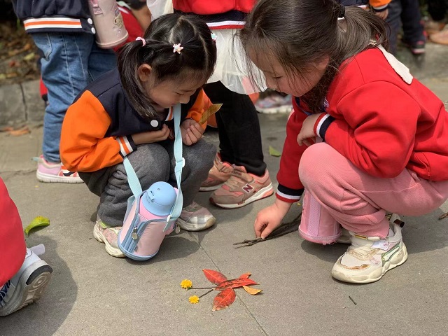 走在街道上,大班的老师提醒孩子们讲授过马路的注意事项,如何照顾身边的弟弟或妹妹,而遇到掉队时该怎样处理。在魏村小区的绿地时,孩子们饶有兴趣地跟着老师寻找春天,时而摆弄落在地上的树叶,时而闻闻花花草草,孩子们亲身感受着大自然的细微变化。休息间隙,老师还不忘提醒孩子孩子们把纸屑、塑料袋等废弃物放到垃圾箱里,这些都让孩子们学到了很多生活中的公德和常识。