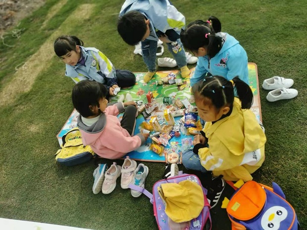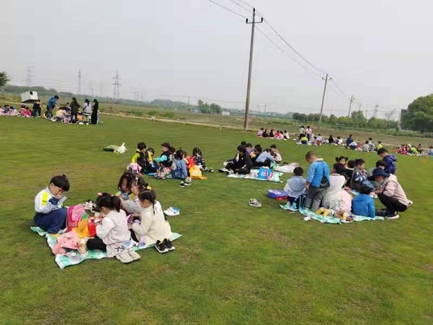 2021年4月16日,孩子们收拾好书包,带上平时最爱的零食,在老师的带领下排着整齐的队伍出发。春季的田间多么美丽,在草地上铺上野餐垫,孩子拿出自己的食物跟好朋友一起分享,绘画美丽的自然风景。快乐的食物分享后,孩子们收拾好自己的垃圾,放进垃圾袋,大家一起争做环保小卫士!