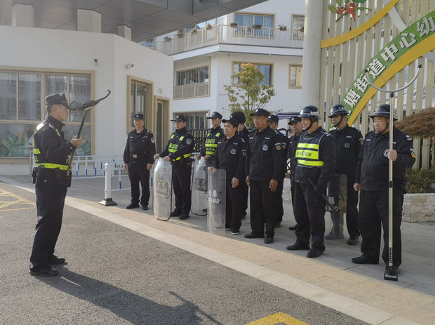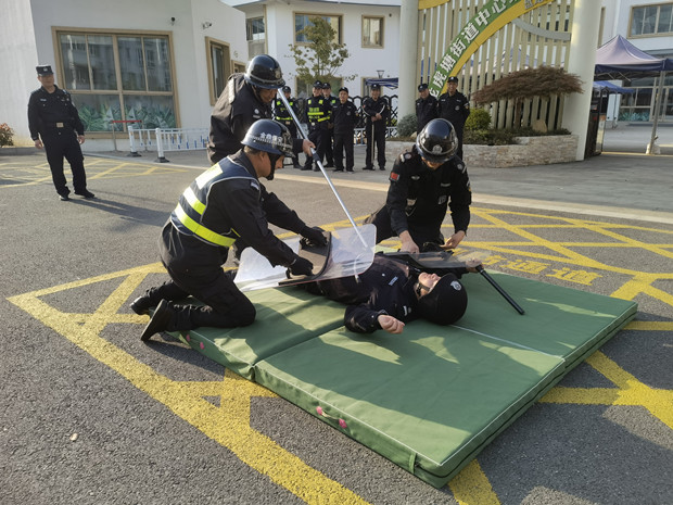 首先,由龙虎塘派出所民警茅警官向大家讲解如何在恐怖分子入侵校园时做好各项防范工作。随后茅警官还向大家介绍了几种专用防备警具的使用要领和自护方法。接着,大家实地演习,模拟如何制服精神病患者强行入园。此次培训内容丰富、专业性强,培训过程中,全体安保人员认真听讲、积极互动。通过此次培训让全体安保人员在应对紧急事件发生时能够采取正确的防护措施和逃生方法,提高了自救自护、紧急疏散的应变能力。