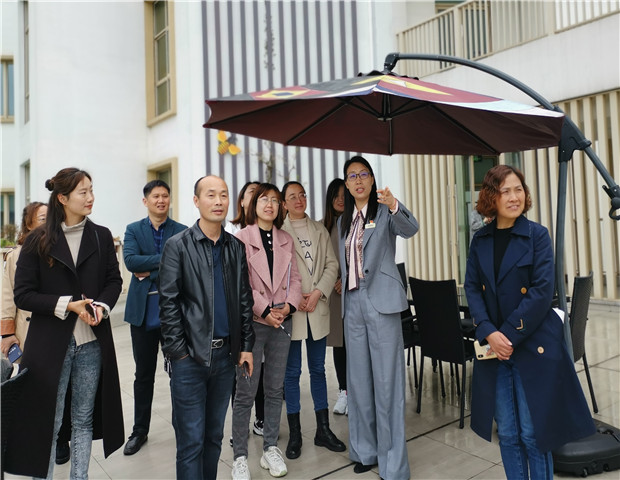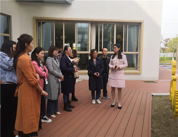 跟岗第一天上午,高亚媛园长以《十年,遇见更美的生长》为题,向跟岗团园长详细介绍了我园集团化办园的发展过程。从“被”规模扩张——“求”事件节律——“寻”文化脉动,十年走过,拥有45年发展历程的龙幼顺利突破瓶颈期,实现有机生长。精彩的专题汇报充分展现了我园对话自己完善自身,对话理想改革现状的过程,让跟岗团园长深刻感受到文化理念引领学校高质量发展的重要作用。同时,为让大家进一步体会文化建设的深度和广度,在龙幼行政团队的陪同下,跟岗团漫步在各美其美的四个园区,聆听幼儿园每一处环境打造背后的故事。在参观的过程中,大家纷纷表示:龙幼的校园建设既有文化意蕴,又充满时代气息,更处处彰显了人文情怀。