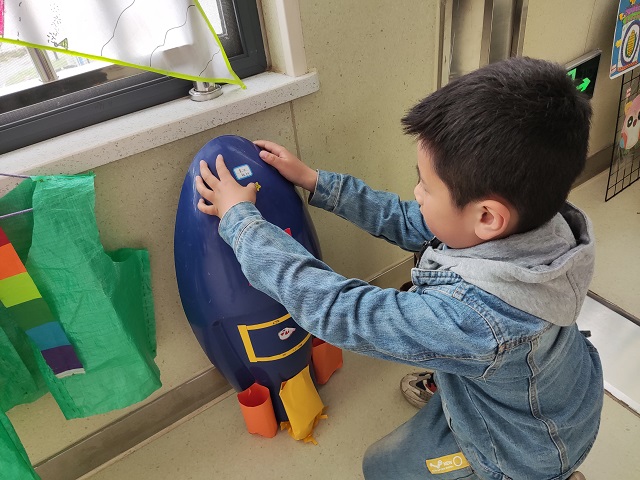 本次活动以“环保性、节约性、安全性、创新性、多功能性、实用性”为宗旨。教师和幼儿采用废旧报纸、编织袋、纸盒、纸箱、颜料、剪刀、胶布等材料,制作自己喜欢的作品。他们有的画图、有的剪纸、有的粘纸,自己设计图案纹样制作的风筝;还有用编织袋制作的服装;彩纸、塑料壳制作的宇宙飞船;涂色的贝壳、废旧的纸绳制作的粘贴画;粘贴画旧纸盒制作的《火箭发射站》等等。
