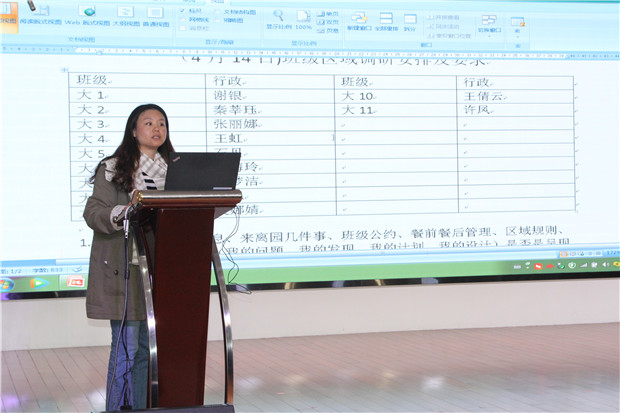 在跟岗活动尾声,教科室主任张泓老师主持了交流分享会。会上跟岗的老师们和我们积极互动。徐园长用讲事例的方式来阐述我园教师较强的实操性和良好的工作习惯,给跟岗园长留下了深刻的感悟:“环境很精致、教研很细致、课程很扎实”;“幼儿是环境的主人,幼儿是活动的主人”;“老师们用心、用情专业地工作”等等。