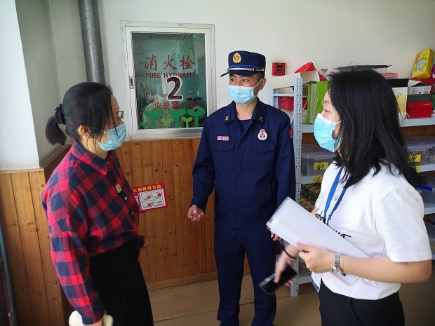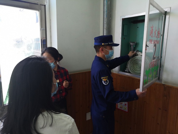 在街道领导周劼同志的陪同下,中国消防救援队的专业人员直奔主题,第一时间进入食堂查看了灭火器,详细检查了灭火器的使用年限和维保记录;随后进入班级和公共区域查看了灭火器和消火栓的维保记录,还认真仔细检查了消火栓及微型消防站的配置情况,在检查过程中,时不时与总务主任钱海南老师进行交流,询问安家幼儿园平时灭火器的维保途径及更换情况,对安幼在消防器材这方面的投入及维保情况进行了肯定,也表扬了安幼领导的安全意识强,落实力度大。