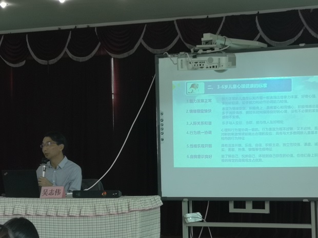 《幼儿园教育指导纲要(试行)》和《健康中国行动——儿童青少年心理健康(2019—2022)行动方案》中指出:“幼儿园在重视幼儿身体健康的同时,要高度重视幼儿的心理健康”。随着信息化时代的发展,越来越多的青少年心理问题的案例出现在大众面前,关注和引导儿童心理健康成为了学校教育不可忽视的重要环节。5月6日中午,安家中心幼儿园邀请了吴志伟老师来园开展了主题为《幼儿教育心理健康教育技能培训》的专题培训,新魏幼儿园全体教师一起参与了本次活动。