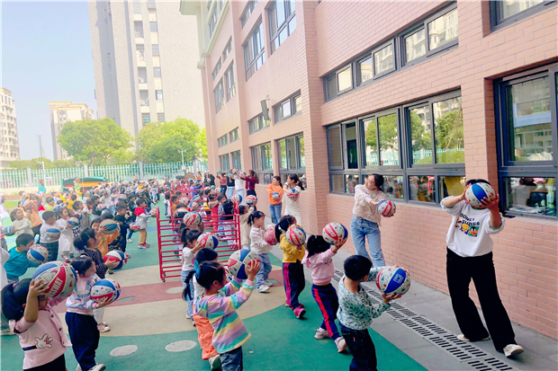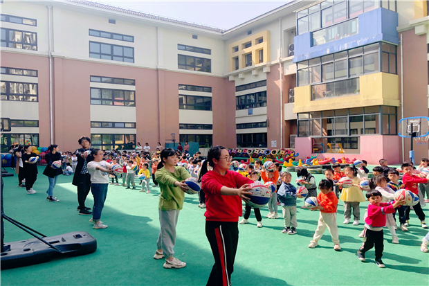 伴随着欢快的音乐节奏,幼儿个个精神饱满,十分投入、娴熟地完成着每一个动作:运球、传球、碰球、拍球、……,将“魅力篮球”的靓丽身姿展现在大家面前。幼儿整齐的动作和昂扬的斗志赢得了在场评委老师们的称赞。