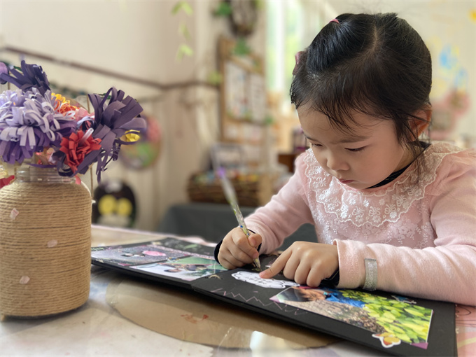 《3-6岁儿童学习与发展指南》中提到,幼儿的学习是以直接经验为基础的,要创设丰富的教育环境,最大限度地支持和满足幼儿通过直接感知、实际操作和亲身体验获得经验的需要。为充分发挥区域活动对幼儿教育的积极作用,四园区各班教师关注本班幼儿关于春天感兴趣的生活,支持幼儿的需求,精心创设了丰富有趣的春日区域游戏:有的孩子在游戏中发现春天的秘密;有的依托春天的植物,感受生命的力量;有的孩子绘画出一幅幅美丽的春之风景,展示着春的美丽……幼儿在参与活动的过程中与环境相互作用,获得各种春日知识经验、获得各种情感体验,形成对自我和自然关系的认识。