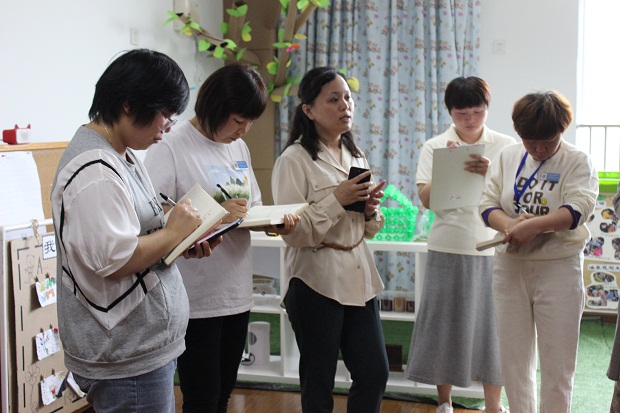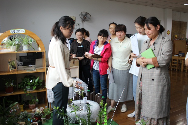 本次牵手活动主要观摩了小3班、中2班以及大2班的自然角。在观摩小班自然角的时候,吴园长从自然角的区域功能划分、自然角课程的支持与推进以及绘本资源的切实有效利用等方面进行了细致地指导。吴园长提出:自然角不再是一种背景,一种支持,而是一种活动课程,幼儿的主动参与才能让自然角的建设更有意义。带着吴园长的智慧点拨,老师们走进中大班教室,老师们结合实际情况共同发现问题、分析问题、解决问题。