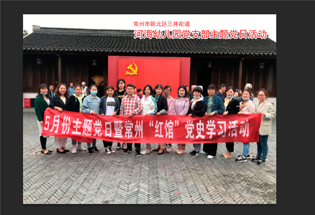 在中国共产党成立100周年之际,为了继承和弘扬党的光荣传统和优良作风,提高党组织的凝聚力、号召力和战斗力,增强广大共产党员的光荣感、责任感和使命感,扎实推进河海幼儿园党支部党史学习教育工作,特组织全体党员和积极分子走进常州市党建与红色文化主题教育馆(常州“红馆”)开展现场学习。