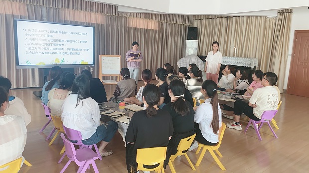 最后,陈莉副园长针对本次研讨进行了总结和提升,科学区域活动是幼儿园科学活动的重要形式之一,是科学集体活动的一种延伸。教师应在观察的基础上,让幼儿在科学区自主选择材料进行探索,在操作和互动中不断发现问题、解决问题,从而获得知识经验。另外,我们的组织形式可以更丰富多样,建议采用个人发言和小组发言相结合的形式,最后请园部小专家来提升。