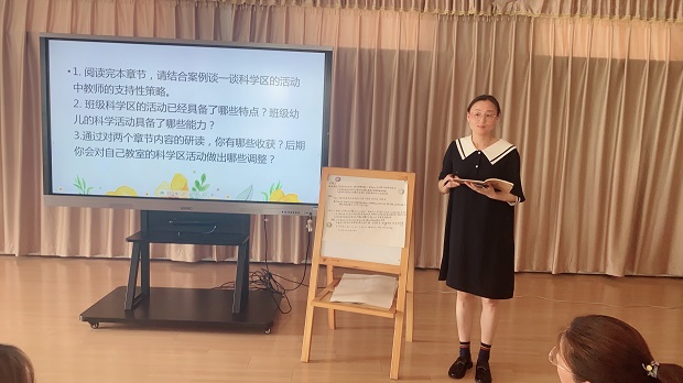 本次共读的是《幼儿园科学区材料设计与评价》的第三章和第四章,围绕“教师在科学区活动中可行的支持性策略”、“班级科学区活动的特点和幼儿具备的能力”以及“研读后的收获和后期调整”三个话题进行。老师们紧紧围绕主题,并结合自身经验和本班的实际案例进行交流研讨,不断碰撞出新的思维火花。