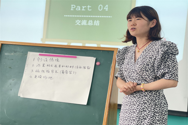 针对大家的讨论,蒋园长肯定了大家的智慧,后期希望大家根据调整让幼儿在游戏中玩得更加开放。