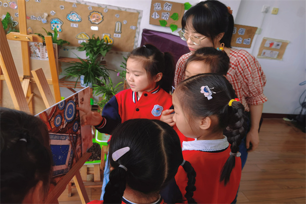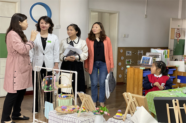 接着,在场的老师观摩了大班组的区域活动。大班组的老师们根据本班幼儿的年龄特点、教学主题及幼儿兴趣爱好,精心设计、巧妙布局,提供丰富的区域操作材料,创设出了一个个富有童趣、寓教于乐的班级区域特色。参与观摩的老师们时而拿起手机拍下有趣的场景、时而与孩子互动、时而与班级老师对话交流,在这种互动的过程中得到提升。