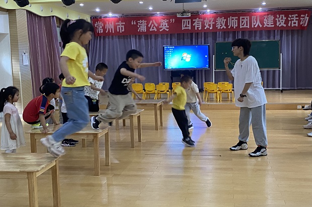 2021年6月3日上午,新北区“四有”好教师团队与“乐享童年”研究中心教师齐聚薛家教育集团聚怡幼儿园开展了为期半天的园际联动交流活动。此次活动分成三个场地进行,每个场地分别由三位来自薛家镇中心幼儿园和奔牛实验幼儿园的教师进行职教。