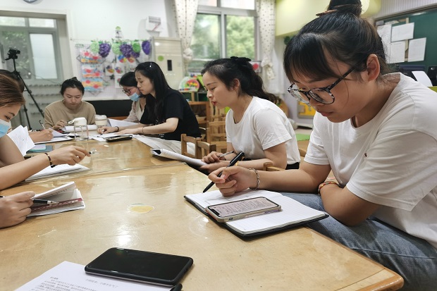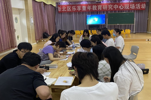 执教结束后三个场地还分别针对课堂教学活动进行现场教研,各场地的听课老师围绕教研问题各抒己见,针对活动目标的适宜性、教学方法的灵活性,重难点是否突出、师幼互动的有效性等问题进行了深度研讨,提出自己的看法和针对性的改进措施。