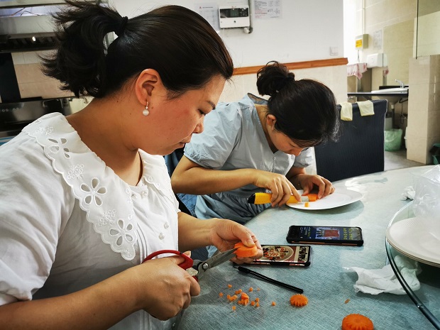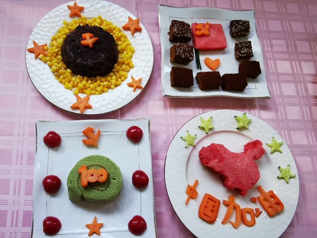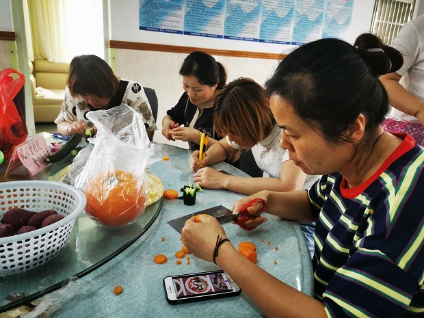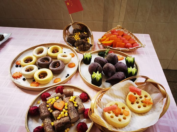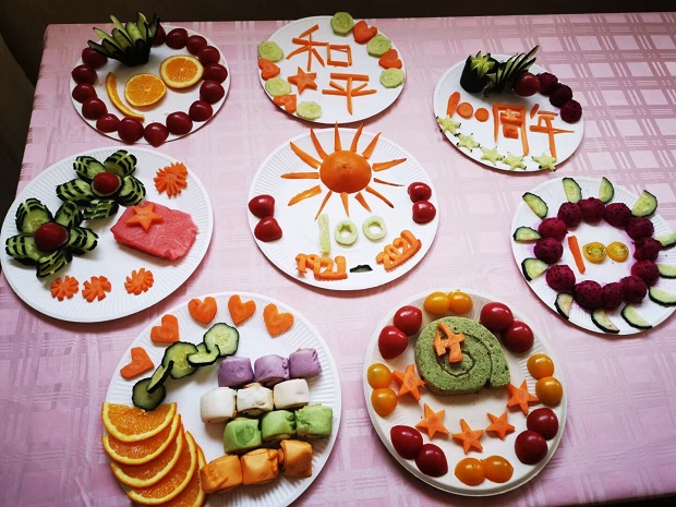 活动前,后勤人员们认真学习,积极筹备,根据自己的思考准备食材。活动中,他们根据材料精心制作,一个个操作规范、技艺娴熟。不一会儿,她们凭着一双巧手、拿出十八般武艺,做出了一道道美味佳肴:五谷丰登、一心向党、花开富贵、党在心中、建党一百周年大拼盘等各色佳肴纷纷亮相。整个过程中见证了他们的刀工、加工、搭配等厨艺基本功。菜品也呈现出了设计有创新、营养显丰富、色香味俱全等特征。随后,教师们分别从口味、操作过程、个人创新及特色几个方面进行了评价。