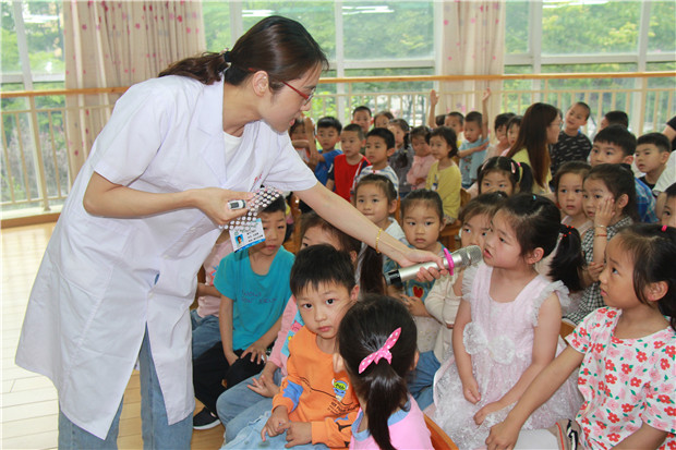 为了逐步实现儿童、青少年近视率下降,视力健康整体水平提升的目标,在全国第26个“爱眼日”即将到来之际,龙虎塘街道中心幼儿园于2021年6月2日下午,邀请了新桥街道社区卫生服务中心尤是娥医生,为中班的孩子们带来一堂关于爱眼护眼的专题讲座。