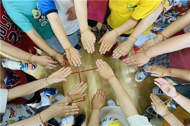 “彩线轻缠红玉臂,小符斜挂绿云鬟。” 五彩绳是端午的必备物品,小班的老师们用五种颜色的线做成了五彩绳,给孩子们送去了祈福安康的美好祝福。