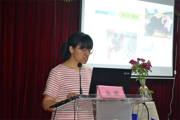 首先是奔牛实验幼儿园STEM项目组金波组长以“和孩子一起爱上STEM——STEM项目活动开展的思与行”为题进行讲座。金老师由一则小故事开始,介绍奔幼从学习思辨初遇STEM到学习推进走近STEM以及多元成效爱上STEM,让参与活动的老师深刻的认识到STEM项目活动源于幼儿生活,始于问题发现,体验奔幼是如何将STEM理念融于课程实施并以此提升园所课程品质。