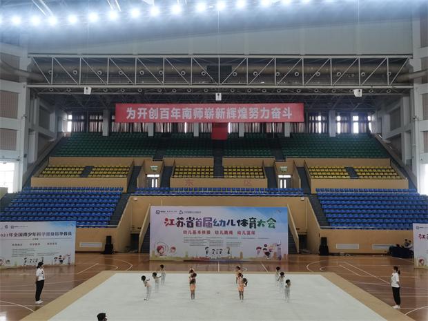 2021年江苏省首届幼儿体育大会-幼儿基本体操项目于6月11日于南京市师范大学体育馆如期举行。来自南京、常州、淮安等地的29支队伍、400余名运动员进行了自编操、徒手操、器械操、男(女)子集体翻腾等项目的比赛。本次比赛西幼小朋友共参加了6岁组幼儿基本体操自编操、女子集体翻腾、男子集体翻腾、花式篮球操和5岁组基本体操规定套五个比赛项目。