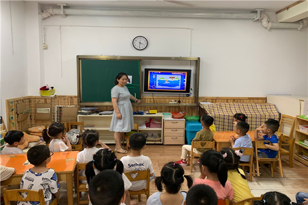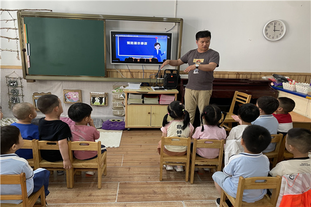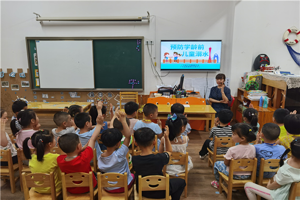 小班和中班教师针对幼儿不同年龄特点,通过视频故事、案例讲述,配合图画、游戏、讨论分享等方式,形象直观地讲解防溺水知识及注意事项,增强全体幼儿安全意识。