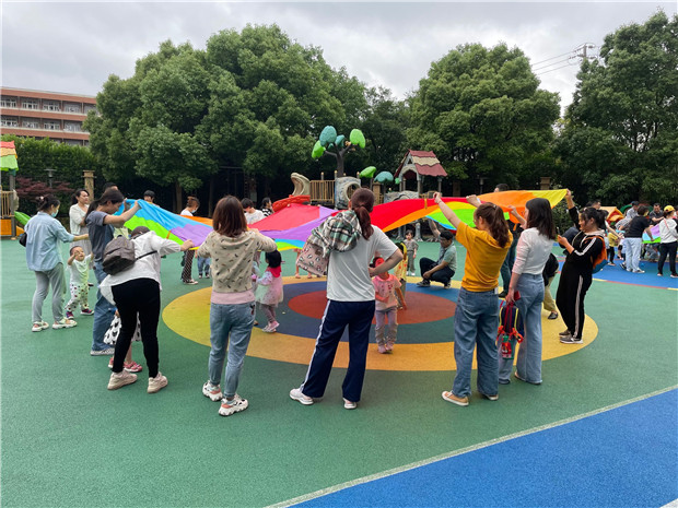 精心准备每一节早教活动,是河海幼儿园党员教师践行初心与使命的态度。妙趣横生的“彩虹伞”是孩子们最喜欢的游戏之一,踏着欢乐的节拍,孩子和家长一起围着彩虹伞“踏浪”,一起撑起彩虹伞“躲猫猫”,尽情享受着亲子游戏的乐趣。“手指变变变”、“五只猴子荡秋千”等等,每一个游戏环节都蕴含着教师们的精心设计,都饱含着河幼教师满足人民对教育新期盼的坚定决心!