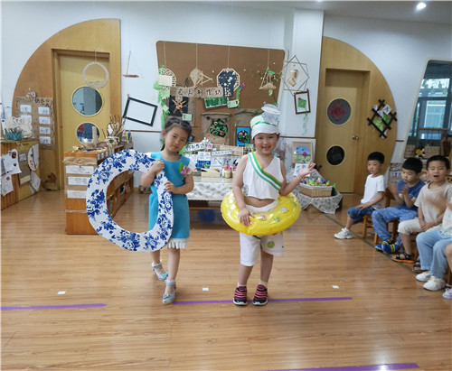 夏季对孩子们而言是个特殊的季节。在夏季,他们摆脱了衣物的束缚,可以自由自在活动;在夏季,他们更喜欢穿上夏日的小裙子,戴上漂亮的太阳帽、太阳镜,撑起遮阳的小花伞自由地展现自我。结合幼儿的兴趣点,部分班级开展了“夏日T台秀”活动。家长和宝贝们奇思妙想,使各种各样的材料发生了华丽的变身。到了T台秀这天,每一个孩子踏着动感十足的音乐节奏,向同伴们自信地展示他们亮丽的盛夏时装。孩子们在尝试用夏季的服装道具装扮自己的同时,也推动了幼儿园嬉夏课程的进程。