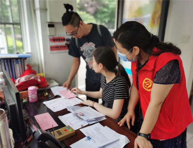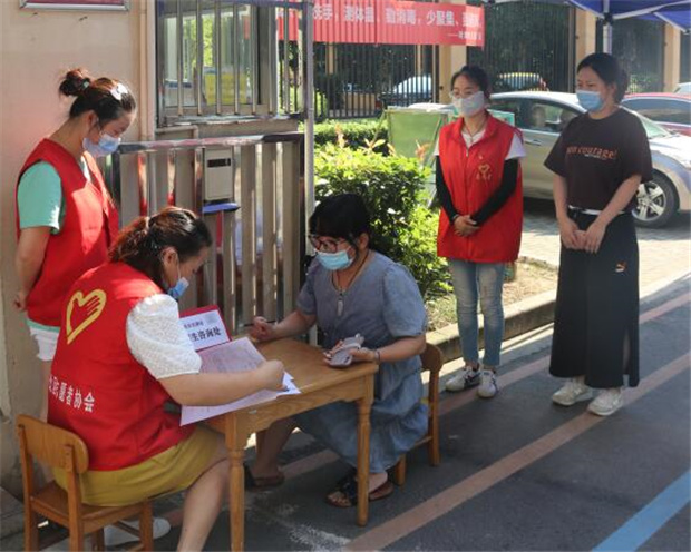6月21日上午,支部书记万立纯带头穿上“红马甲”,早早地来到了幼儿园门口的招生咨询处,以满满的微笑迎接前来咨询的家长。面对前来的家长,党员教师志愿者们耐心地指导填表,一一解答疑惑,发放幼儿体检预约单等。