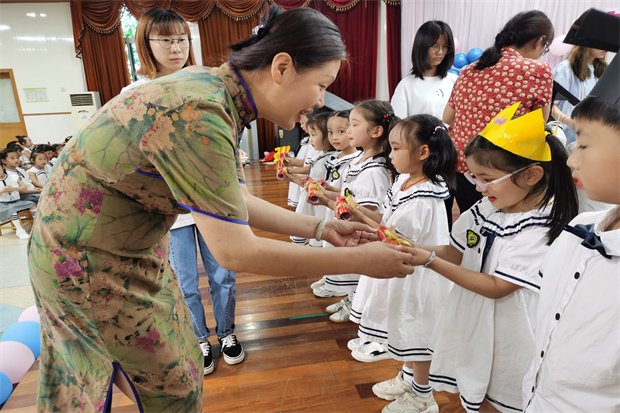 毕业典礼在孩子们观看自己成长点滴的录像中缓缓拉开了帷幕,视频中不仅记录了孩子们在幼儿园的成长历程,还有爸爸妈妈和老师们的期盼,孩子们对幼儿园浓浓的不舍之情。园长妈妈的深情寄语里,是浓浓的厚爱、是殷殷的嘱托、是美好的祝福……