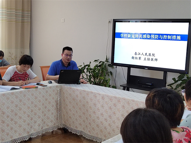 为了进一步扎实开展疫情防控工作,保障全园师幼的生命安全及各项开学工作的顺利进行,8月23日下午2:00,滨江豪园幼儿园邀请春江人民医院衡红军主任为全园教工做学校疫情防控培训。