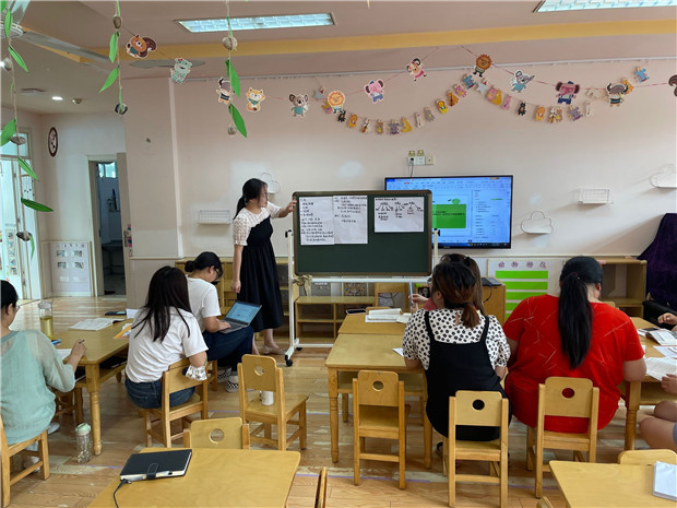 活动伊始,妙趣横生的游戏活跃了气氛,一场名叫“观察”的游戏,让教师们直接感知了观察存在于生活中的角角落落。活动中,大家通过理论学习、案例剖析、实操演练等多种方式,滔滔不绝地“话”观察、“细”做法、“研”策略,广大教师对于观察后的科学解读、有效支持等内容有了更深入的理解和思考。