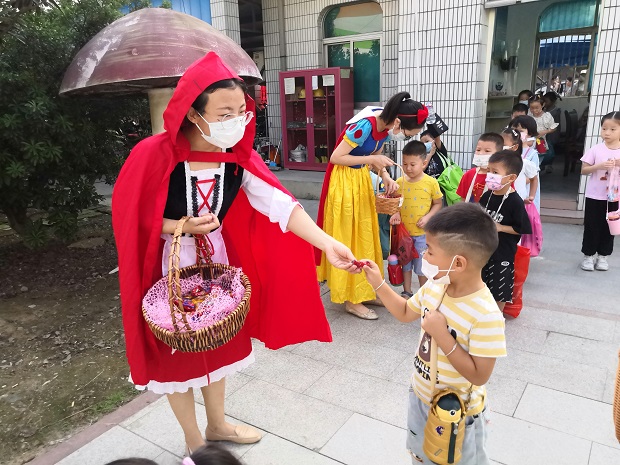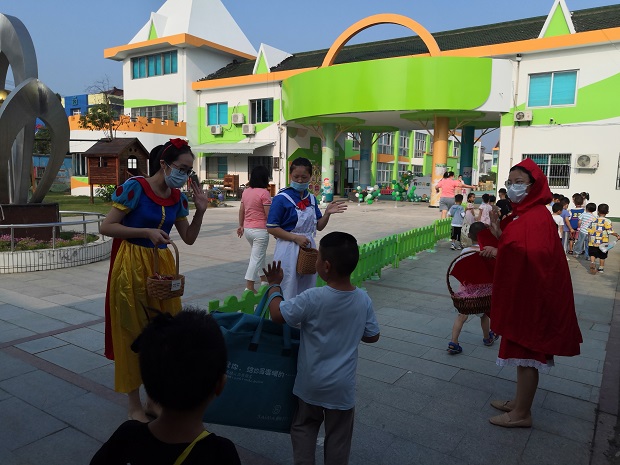 根据疫情防控要求,7:50开始错时错峰入园,安幼迎来了可爱的孩子们,进入校园,大家被卡通人物形象吸引了:冰雪女王、白雪公主、小红帽、爱莎公主等,再加上小哥哥小姐姐为入园的同伴分发礼物,安抚情绪,促使老生乐不思蜀,忘记了进班,新生也把分离焦虑抛到了九霄云外!园内还有供孩子们自主选择礼物、零食的区域,让中大班小朋友签名的签名墙……充满趣味的开学第一天,让安幼的孩子们仿佛进入了童话世界,一系列的操作,缓解了孩子们离开家庭的焦虑情绪,被新奇的幼儿园生活所吸引。