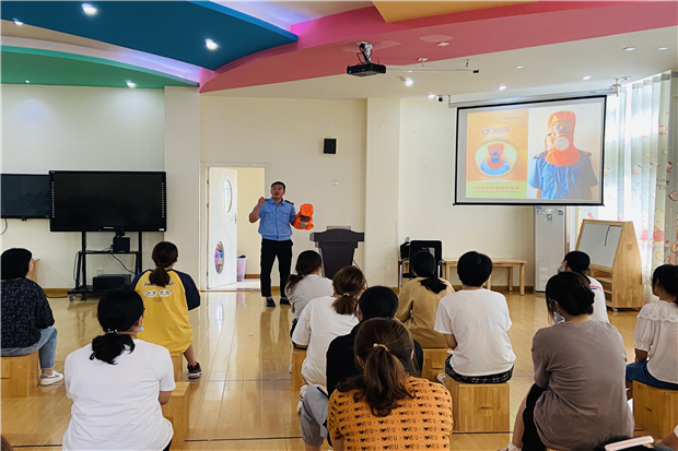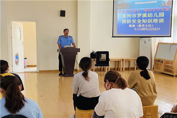为强化幼儿园安全管理,进一步普及消防安全知识,使教师掌握防范、灭火、组织幼儿逃生的方法,远离火灾,2021年8月31日,罗溪镇中心幼儿园邀请了常州市安居防火中心教员部主任陈振为大家进行了“落实安全责任,推动安全发展”为主题的消防安全知识培训。
