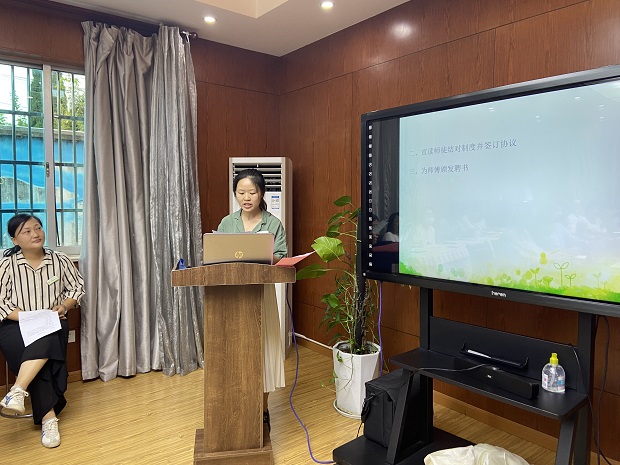 首先,殷老师宣读了“师徒结对”双方职责及具体要求,并确定了“师徒结对”具体人员名单。接着,师徒双方共签“师徒结对协议书”,师傅接受聘书。张园长强调:师徒双方在教育教学上要互相促进,互相提高。希望骨干教师发挥传、帮、带的作用,带又分为四部分内容:1.德(师德)2.才(业务水平以及能力)3.教(教学)4.研(教研和科研)。