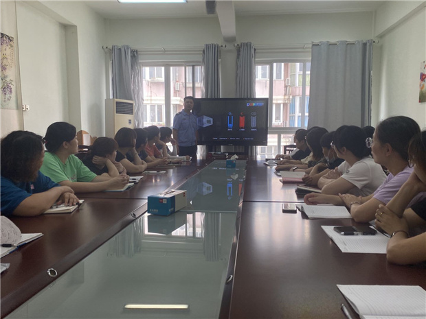 本次活动特地邀请两位专业消防指战员前来进行培训和指导。培训中教官利用各种图片及视频结合消防安全专业理论知识给全体教职工上了一堂精彩的消防安全课。两位教官通过真实生动的火灾案例,深入浅出地讲述了消防安全的重要性,特别对防火、逃生、自救、灭火四个方面进行了重点阐述。培训会上,还对二氧化碳、干粉、水基三种灭火器的使用进行了详细的讲解,并指导大家正确使用灭火器后安排全员依次进行了实操练习。