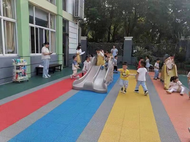 入园接待,三位老师能够分工合作迎接幼儿、指导幼儿进行桌面游戏。户外活动时,三位教师分别站在活动场地的前中后保护幼儿的安全和维护游戏秩序,让幼儿能够开心地游戏。教学活动中,曹老师执教的语言活动《圆圆爱上幼儿园》,以故事为载体,通过让幼儿看一看、听一听、说一说圆圆爱上幼儿园的故事,缓解幼儿的分离焦虑,让幼儿喜欢上幼儿园。在活动的过渡环节和盥洗活动,老师们能组织幼儿有序如厕、洗手,组织幼儿手指游戏,避免出现无效等待。