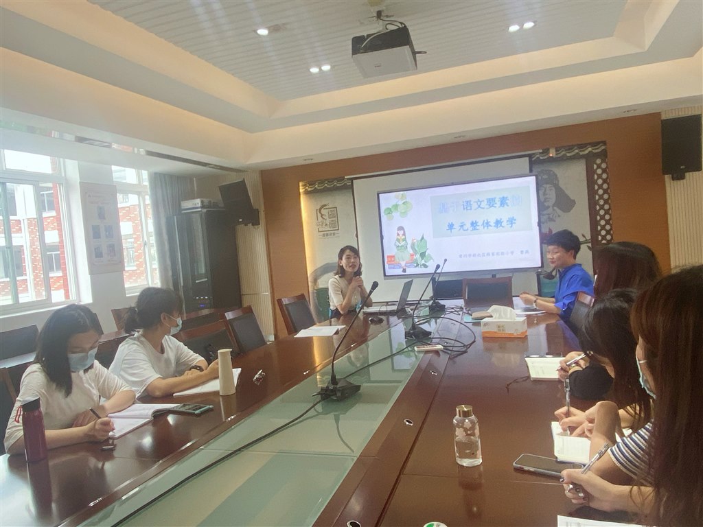 活动中,成长营领衔人曹燕老师进行了《基于语文要素的单元整体教学》的专题讲座。曹老师从统编版教材的变革出发,阐述了基于语文要素的单元整体教学研究的必要性,接着,她从“瞻前顾后,确定要素能级”、“细读文本,找到语言密码”、“设计活动,指向言语实践”、“运用评价,促进分层发展”四个方面呈现落实单元语文要素的策略。讲座中,曹老师以“想象”单元为主要切入口,以二年级下册第七单元、三年级上册第四单元为例,研究课例为重要载体向老师们更直观地展现要素的落实和推进。她表示,基于语文要素的单元整体教学研究,让学生能力的提升有策略、成系统,最终会进一步提升学生的学科素养。