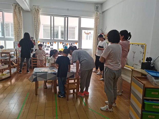 在中午的研讨活动中,各位老师对于上午的现场各抒己见,其中大家对大(3)班图书区创设的分区设计、材料的层次性给予了肯定,也是其他班级在创设时可以参考的。但是对于文字类游戏,老师们也建议班级老师,还是要了解班级大部分孩子的识字经验后,在进行循序渐进的游戏推进。最后,大家结合现场和研讨话题,理出了图书区创设实际可行的经验: