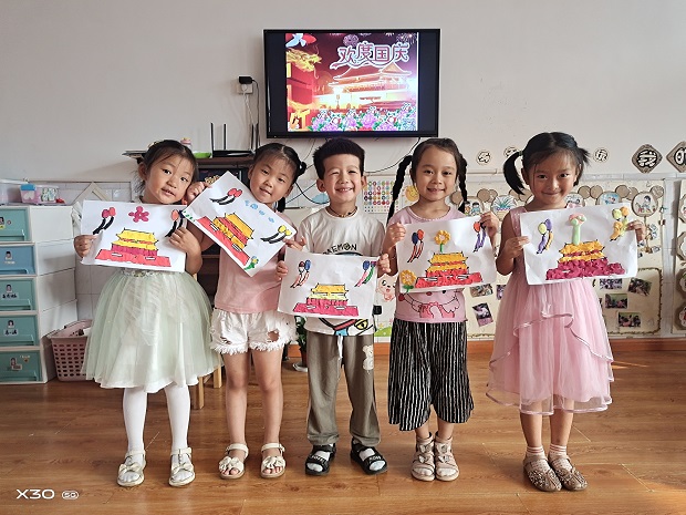 为了让幼儿对国庆节有更深入地了解,我们小班开展了给中国地图粘贴、国旗涂色等活动。小班小朋友虽然年龄小,但是在活动中积极性较高,涂色和粘贴活动能够主动参与,对于刚上小班还不到一个月的小班宝贝们来说,已经非常不容易了,为小班的宝贝们点赞!中班小朋友已经有了一定的绘画基础,画一画天安门、泥塑国旗等活动,表达了对祖国妈妈的热爱之情。大班小朋友开展了亲子制作灯笼打扮活动室,师幼共同设计搭建天安门和长城等活动,用他们灵巧的小手营造快乐的节日气氛,孩子们亲自打扮活动室开心极了。