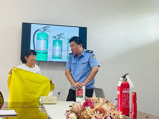 除了一些知识的讲解,实际的操作更是巩固了消防安全工作的展开。张主任将灭火毯、灭火器、逃生面罩等消防用具的使用进行了现场教学,为安全防护工作提供了实际的操作经验,提升了幼儿园教职工的消防安全水平。