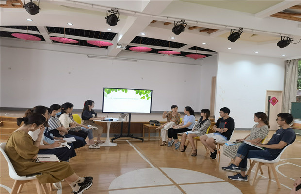 区域观摩结束后,老师们集中在会议室,先由三位老师分别根据自己的教学现场、教学活动设计的思路,来反思集体教学的价值性和有效性。春幼、圩幼的老师抛砖引玉,大胆地表达了自己对三节活动的思考。庄春梅老师接过老师们的研讨话题,从活动内容、学习有效性,结合课程游戏的要求,深入地点评了三节活动,她也提出了核心经验作为目标依据,应当是老师为集体教学活动设计支架,从而保证集体教学价值和时效性。